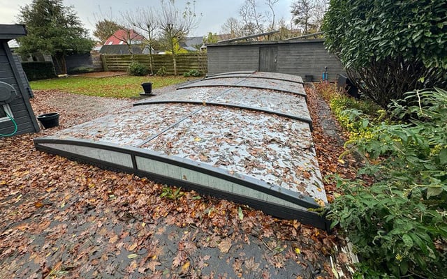 Reinigungsaufwand: Blätter, Insekten und andere Ablagerungen bleiben außen an der Poolüberdachungen.