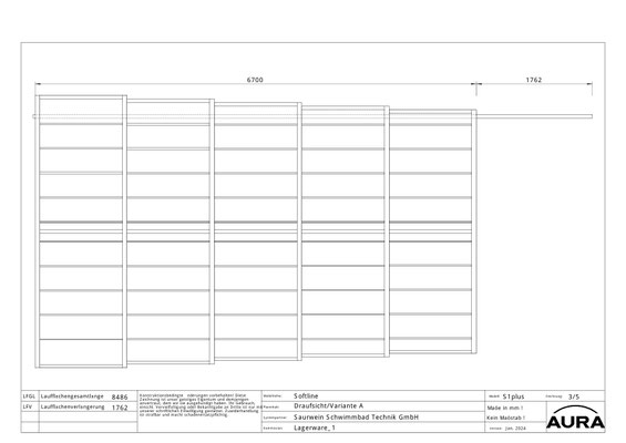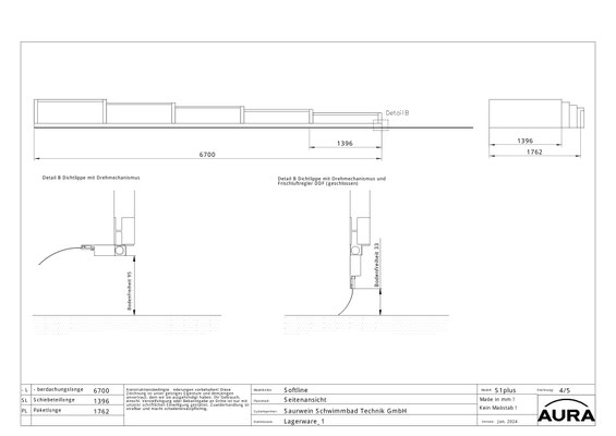 Standardausstattung: 6700 x 3450 x 558 (LxBxH in mm)